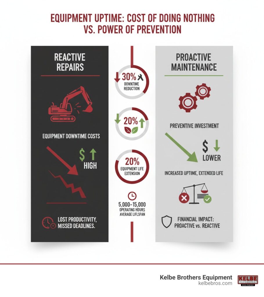 An ounce of prevention is worth a pound of cure, especially with heavy equipment. A solid preventive maintenance program is your best defense against unexpected breakdowns. Proactive construction equipment service can reduce downtime by up to 30% and extend your equipment’s life by 20%. This represents real money saved and projects completed on time.